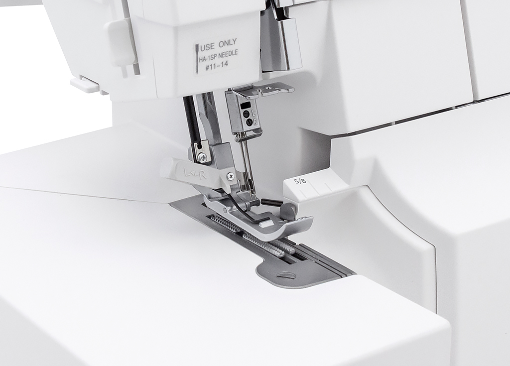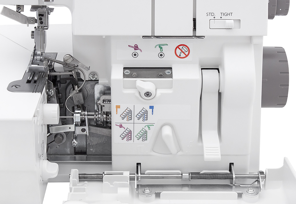 С помощью специального переключателя, позволяющего выполнить предварительную настройку натяжения нити петлителя, можно быстро перейти к шитью ролевым швом. Также здесь реализован встроенный конвертер для шитья в режиме 2-х ниточного шва.