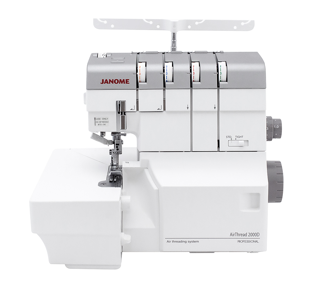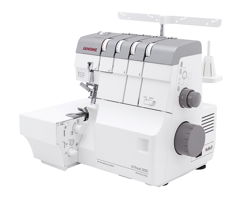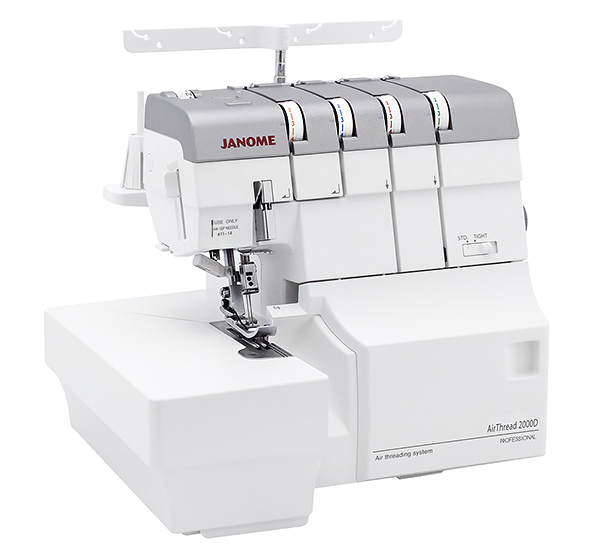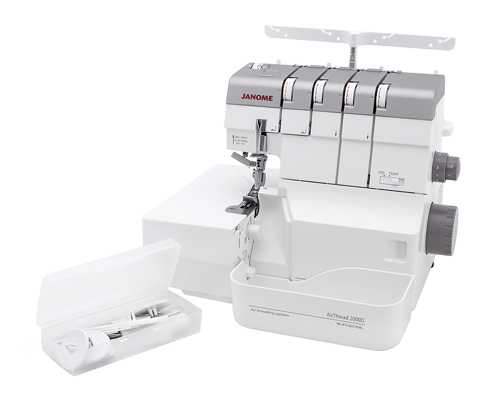 4-x (3, 2-x) - ниточный оверлок AirThread 2000D Professional - новинка от компании Janome с уникальной системой воздушной заправки петлителей. Вы просто вставляете нить в отверстие, соответствующее нижнему или верхнему петлителю, нажимаете на специальный рычаг, и воздушный поток направляет нить по трубкам прямо в петлитель. Еще одна особенность данной модели - встроенный регулируемый нитевдеватель, с помощью которого без особых усилий можно заправить как левую, так и правую иглу. Все это сокращают время и упрощает процесс подготовки к шитью.
