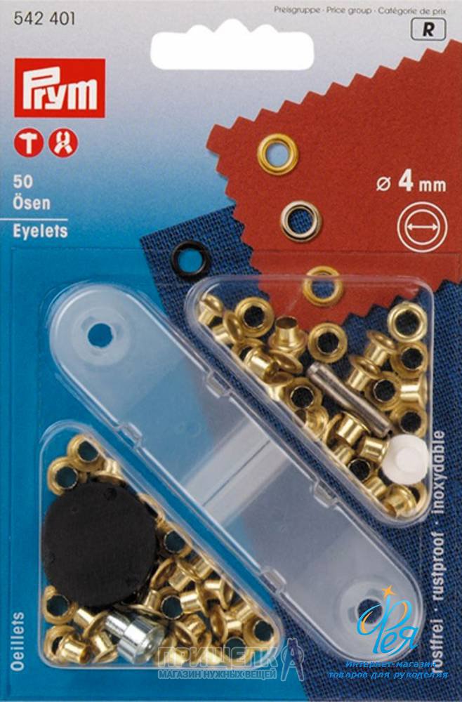 542401 Prym Блочки для шнурков золотистые 4 мм