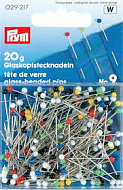 029217 Prym Булавки с разноцветными стеклянными головками 30*0,6мм, 20г (блистер)