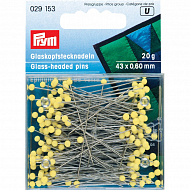 029153 Prym Булавки с желтыми стеклянными головками 43*0,6мм, 20г (банка на блистере)