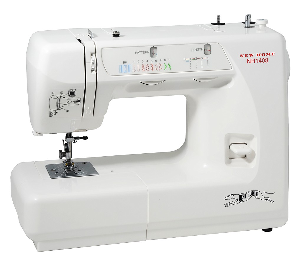 Швейная машина New Home NH1408 прекрасно - отличный выбор для начинающих. Она отличается простотой в использовании и фирменной надежностью марки. У данной модели хорошая мощность, 10 рабочих строчек, петля выметывается в полуавтоматическом режиме.