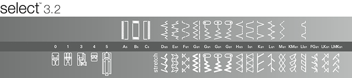 PFAFF Select 3.2 - вертикальный ротационный челнок (двойного обегания). Швейная машина Select 3.2 выметывает петлю в полуавтоматическом режиме, выполняет27 строчек. У данной модели есть встроенный верхний транспортер, длина стежка до 6 мм, ширина строчки до 5,5 мм, в комплекте 5 лапок, жесткий чехол.
